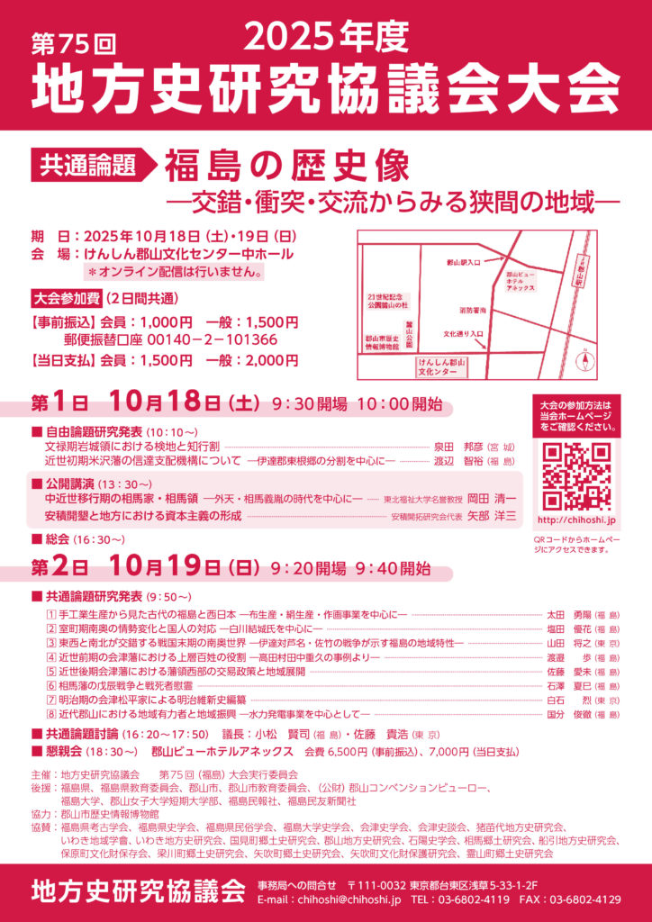「第75回地方史研究協議会 福島大会」が開催されます